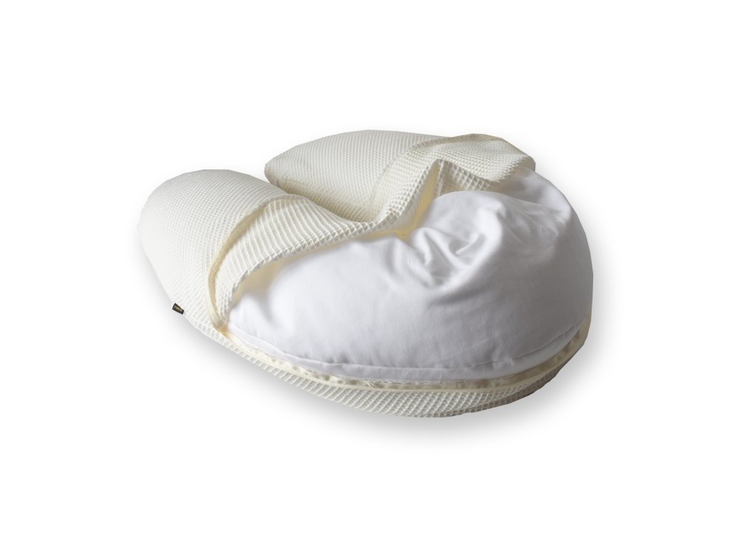 Povlak je z minky. Minky je jemné, hladké a příjemné na dotek, což zaručuje maximální komfort pro vaše miminko během kojení nebo odpočinku. Má dostatečně dlouhý zip pro snadné sundání, ve spodní části jsou tkanice pro svázání konců polštáře k sobě, čímž vznikne bezpečné a pohodlné hnízdo pro Vaše miminko.