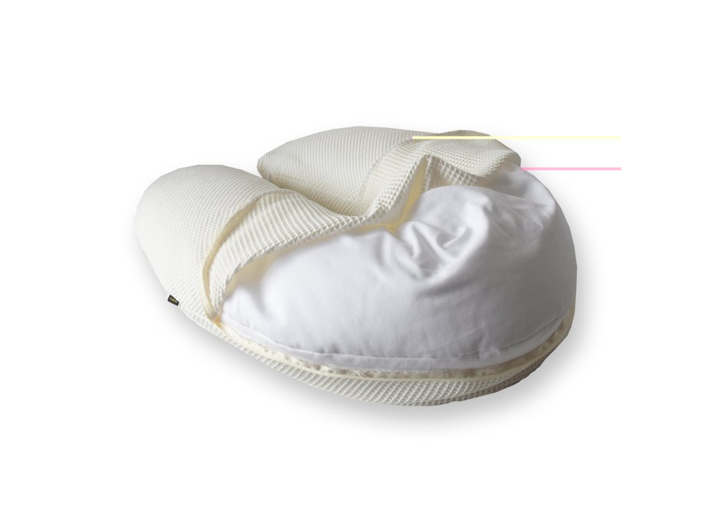 Povlak je z minky. Minky je jemné, hladké a příjemné na dotek, což zaručuje maximální komfort pro vaše miminko během kojení nebo odpočinku. Má dostatečně dlouhý zip pro snadné sundání, ve spodní části jsou tkanice pro svázání konců polštáře k sobě, čímž vznikne bezpečné a pohodlné hnízdo pro Vaše miminko.