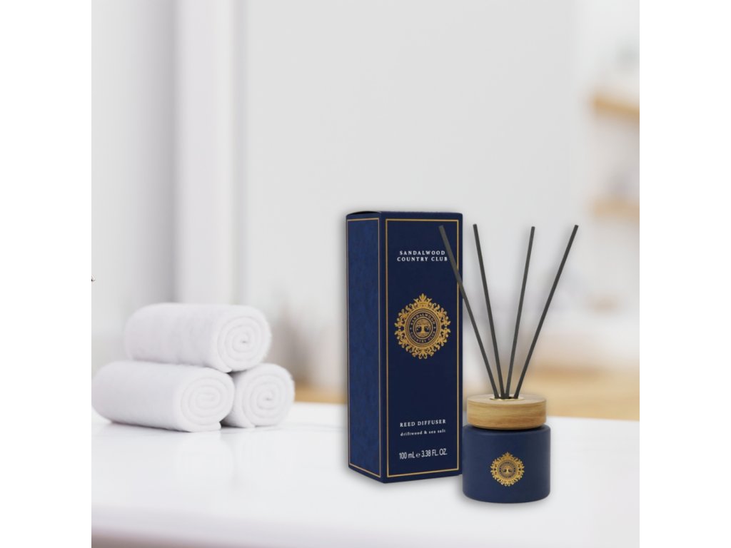 Vonný difuzér se svěží vůní mořské soli, naplaveného dřeva a santalového dřeva.