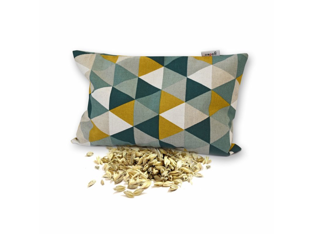 Nahřívací špaldový polštářek ulevuje od bolesti, je 100% přírodní. Geometrický vzor.